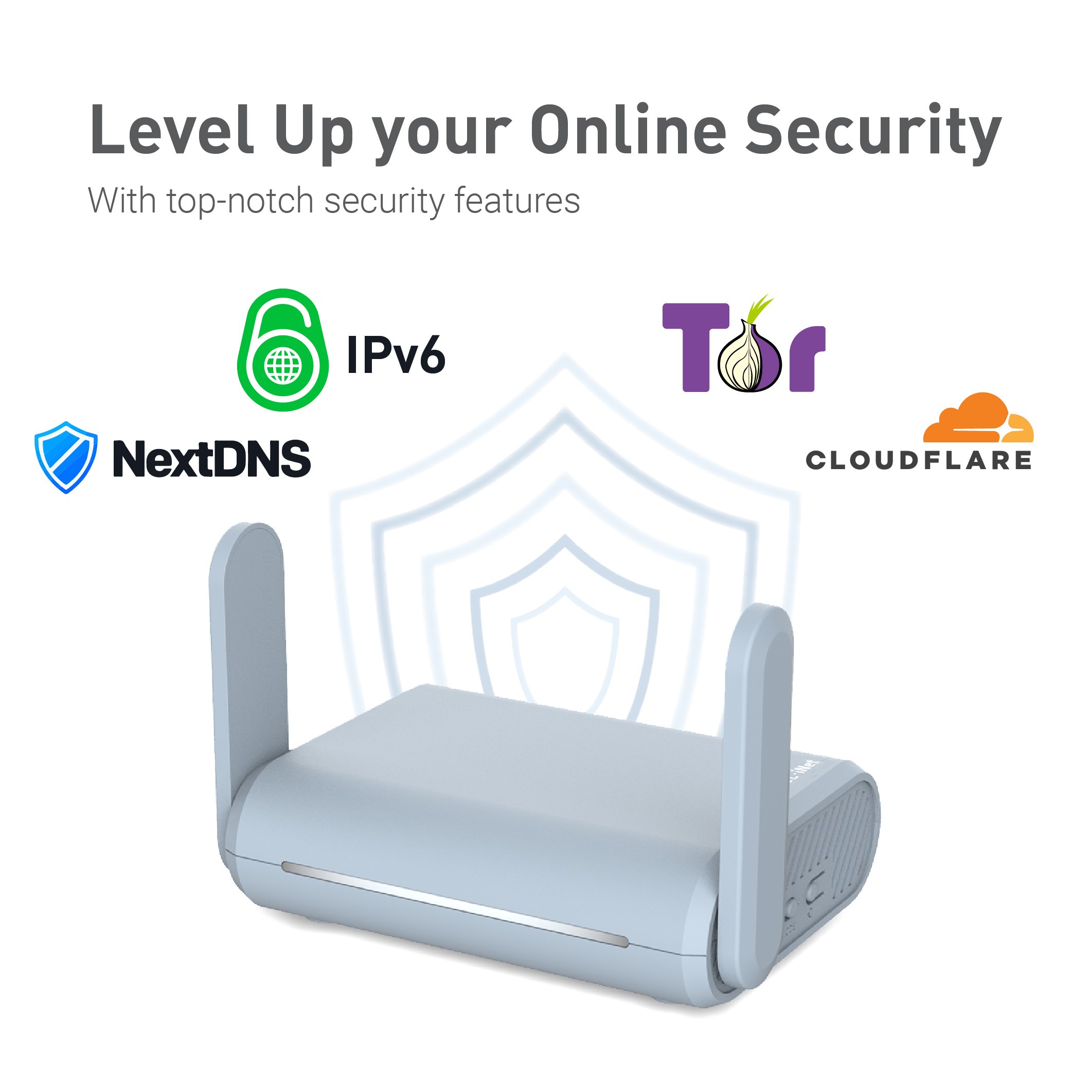 • Keep your Internet Safe: IPv6 supported. OpenVPN & WireGuard pre-installed, compatible with 30+ VPN service providers. Pre-installed Tor service. Cloudflare, NextDNS Supported. A toggle switch for VPN/Tor is also included.
