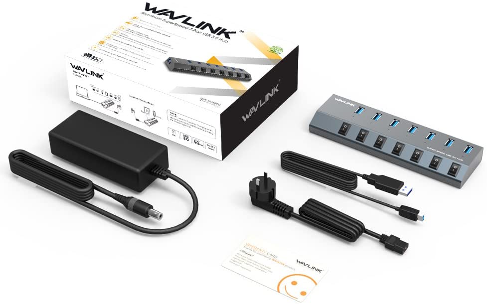 - 【What You Get】1 x Aluminum 7 USB 3.0 Port Hub; 1 x USB 3.0 Extension Cable; 1 x Power Adapter DC 12V/4A; 12-month warranty; Life-long friendly customer service.